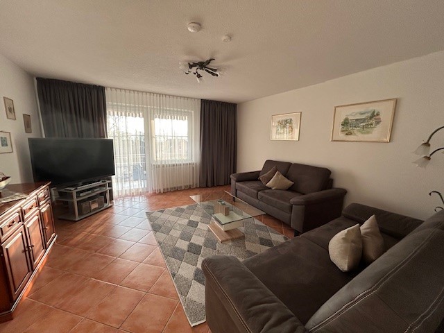 • Wohnzimmer mit gemütlichen Sofas und Großbildschirm-Fernseher